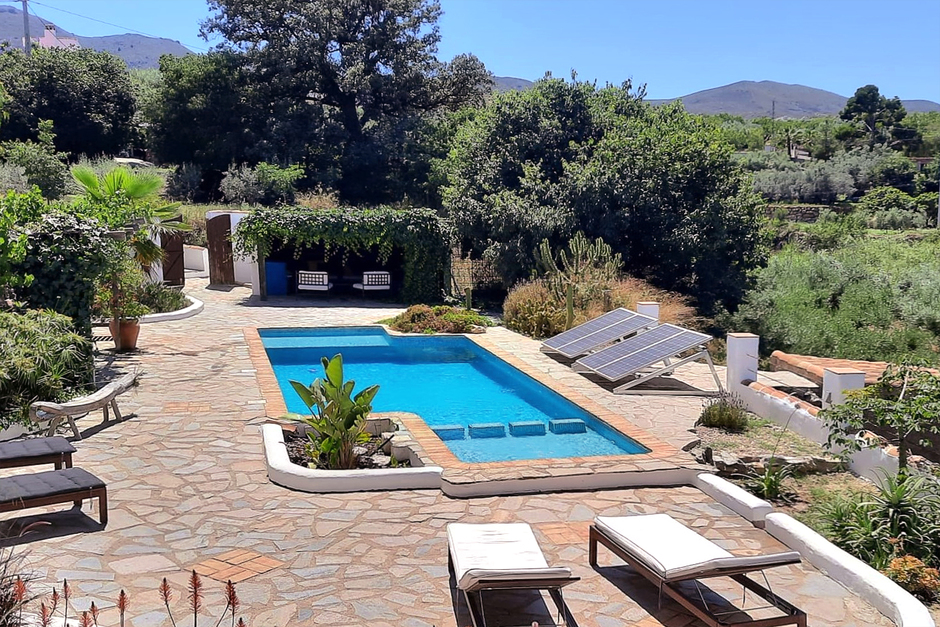This traditional country home with swimming pool set on 4 acres of terraced land with olive, almond and fruit trees is about 1 km from the town of Lubrin and ideal for an authentic Spanish stay. The apartment is centered around family life with many family amenities available, a trampoline and swingset for kids to enjoy, and indoor and outdoor dining areas for a true farm to table experience. Locally produced olive oil and honey is available to buy nearby and you can also tour the factories where they are produced.