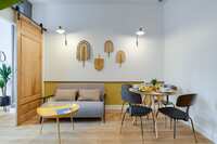 The apartment is located in the heart of the L’Eixample neighborhood, known for its authentic experience thanks to the many Catalan locals. It’s a 20-minute walk to Las Ramblas, the bustling boulevard filled with high-end shops and a huge selection of first-class restaurants. The famous la Sagrada de Familia, Gothic Quarter and Barcelona’s beautiful beaches are all just a 20-minute metro ride away. The airport is around half an hour away.