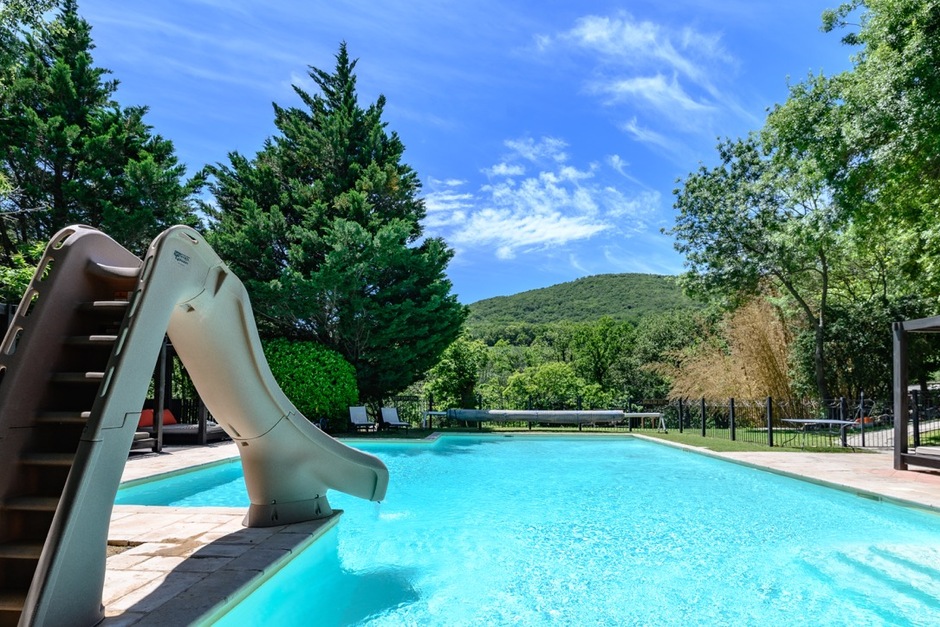 Rates include childcare and are based on a family of 4. There is an additional fee of €600 per person 3 months of age or older, rising to €1000 in peak season. The estate is all-inclusive from June to mid-September, fully catered with all onsite activities included plus swimming and tennis lessons for kids, 1 spa treatment and massage per family member (adults and children alike), wine tasting, family and adult yoga classes and 2 off-site activities per person included in the rate. All drinks and all shop items are included plus a washing and ironing service too. Outside these months, the accommodation is offered on a self-catering basis with all onsite activities, childcare and babysitting included with spa treatments, off site activities, lessons, yoga sessions, wine tasting, drinks and shop items payable separately. Daily housekeeping is included all year round. The peak season, July-August, is very popular and advance booking is highly recommended. There is a TV with Sky TV and a DVD player plus WiFi. The main pool is heated from April to September. Free tea and coffee is provided at the bar all day along with afternoon tea and cakes; also provided is an arrival shopping pack including fresh fruit and vegetables. Outside the peak summer months, there is a small shop and bar, and you can buy chef-prepared meals and locally sourced ready meals to put in the oven so you don’t have to cook.
