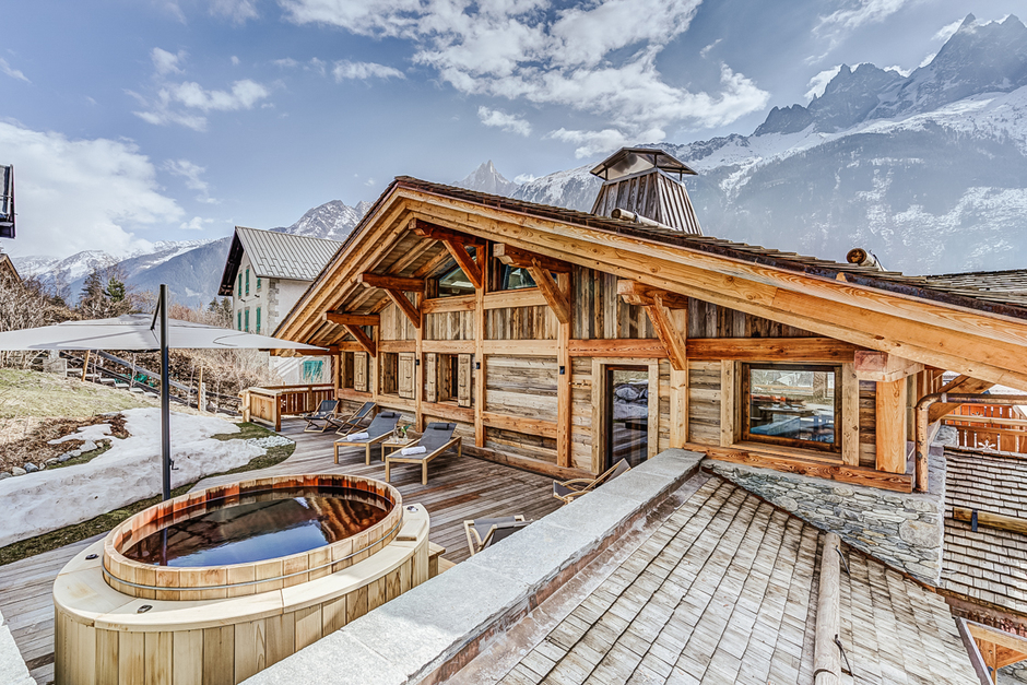 A brand new chalet located in a prime spot at the entrance of Chamonix, France - just a few moments from the ski slopes of Le Brévent - La Flégère. It sleeps 14. This luxurious chalet has been built with traditional rustic materials yet designed with a fresh, modern look. Parents will love the high-end facilities, the outdoor hot tub, the handy ski and boot rooms and the stunning décor throughout. The layout of the chalet means that it’s ideal for parents traveling with a nanny or au pair (who can use the separate TV room as a bedroom) and it’s also large enough for 2 or 3 families to visit together - the children won’t mind sharing these bedrooms! It’s within walking distance to the ski slopes as well as the center of Chamonix, so you can enjoy the après ski and simply saunter home.