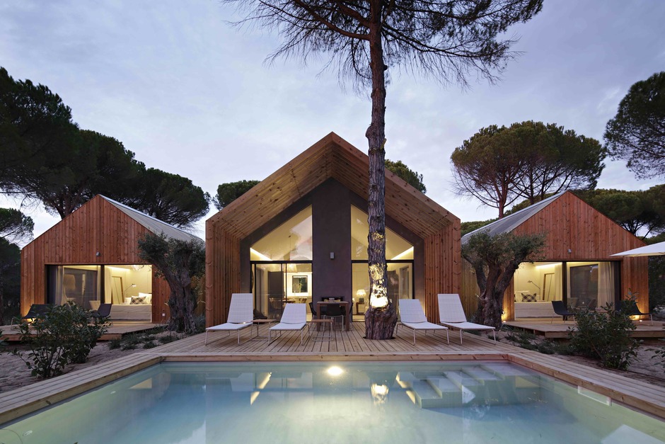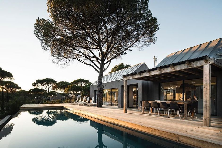 The hotel has 23 rooms and suites plus 22 villas. The Owners House building (rooms and suites for 2) is for adults only. Guests suite: located in a separate building on the property. Designed as open spaces with mezzanines and high ceilings they all have a private deck with an outstanding view of the resort’s garden. A full bathroom with rain shower is located on the second story of the mezzanine (note there is a staircase), leaving more free space in the bedroom and living area. All suites have a sofa bed which enables a stay for 2 adults and 2 children up to the age of 12. For guests' comfort, the suites include a small bathroom on the ground floor. (Sleeps 4, 38m2 + 12m2 of terrace). Bio-pool suite: 9 cabanas built overlooking one of Europe's largest biological pools, including private terraces that allow guests a direct plunge into the freshwater. The water is solely treated with aquatic plants, no chemicals are used - it’s a true living ecosystem and as such, different species of plants and animals coexist in perfect harmony. For more sensitive guests, the hotel can provide earplugs if the sounds of nature interrupt your sleep! Each suite includes a king size bed, sitting area with a salamander and a large bathroom with a walk-in shower and a freestanding bathtub. (Sleeps 2, 50m2 + 25m2 deck). Cabana room: located in a 2-bedroom villa, these large rooms have kingsize beds and were designed to offer the experience of waking up amidst the natural surroundings. (Sleeps 2, 50m2 + 15m2 deck). Cabana suite: part of a 2 bedroom villa, these suites are made up of a cabana room plus a main cabana, which includes a living room, dining area, a fully equipped kitchen and guest bathroom. The bedroom includes a kingsize bed (some of which are adaptable to twins), a bathroom with rain shower and a stunning freestanding bathtub with garden views. It also includes an indoor/outdoor fireplace as well as a private pool and deck. (Sleeps 2, 110m2 + 50m2 deck). Villa Room standard/master/sublime: located in one of the cabana villas, these rooms include a kingsize bed (adaptable to twin beds), a bathroom with rain shower and underfloor heating. True to the 'cabana' concept, each room is separate within the villa, but shares a common entrance and has access to all shared common spaces with other guests staying in the same villa (entrance hall, outdoor deck and pool). (Sleeps 2, 25m2). Two-bedroom cabana villa: a contemporary take on Comporta’s traditional cabana houses, they include 2 cabana rooms with ensuite bathrooms (each with a stunning, large freestanding bathtub and rain showers), a spacious living room and dining area with a fully equipped kitchen and guest bathroom. They also include an indoor/outdoor fireplace as well as a private pool and 3 decks. (Sleeps 4, 160m2 + 3,000m2 outdoor space). Three-bedroom cabana villa: each of these cabana villas has a private pool and includes 3 bedrooms (one master and 2 standard suites), each with its own separate entrance, private terrace and ensuite bathroom. With floor-to-ceiling windows maximizing the stunning views of the property, the large living room includes a dining area, a fully equipped kitchen and a guest bathroom as well as a beautiful, suspended, indoor fireplace. (Sleeps 6, 230m2 + 7,000m2 outdoor space). Four-bedroom cabana villa: each of these villas have a private pool, as well as 4 bedrooms (2 master and 2 standard suites) each with its own separate entrance, private terrace and ensuite bathroom. The villas have the same living space, dining area, kitchen and guest bathroom as the 2-bedroom villas, together with an indoor fireplace and a large private deck area. (Sleeps 8, 290m2+ 7,000m2 outdoor space). Five-bedroom cabana villa: the largest room type available, these villas have 5 bedrooms (1 master and 4 standard suites), each with its own separate entrance, a private pool, large deck and a guest bathroom, as well as the same living/dining/kitchen spaces as the smaller villas. (Sleeps 10, 290m2 + 7000m2 of outdoor space).