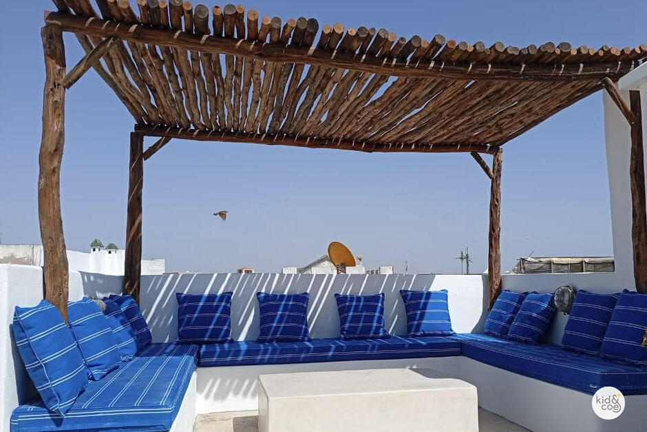 The property has plenty of space to hang out as a family or for older kids to get their own space. One of the guest bedrooms on second floor has stairs up to the bed and seating area below, perfect for teenagers. There is also a huge collection of books, CDs, and an assortment of board games. Dar Beida is just down a short street from the market, and is 5 minutes to the fortress and restaurants so is perfect for little legs that tire quickly. Kids will also love the camel riding, digging sandcastles on the beach and playing in beach playgrounds. Children under 4 stay for free.