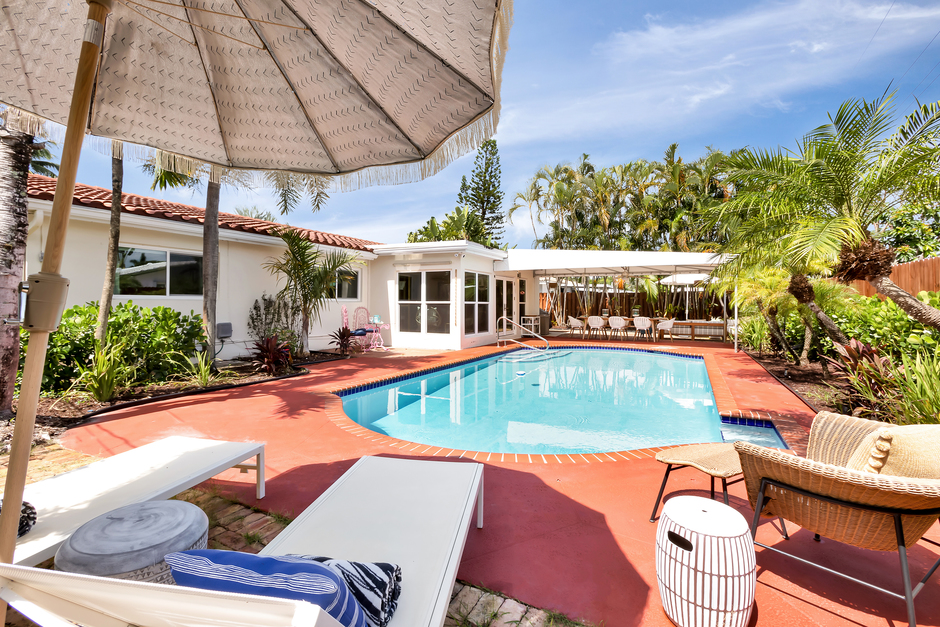 A mid-century beauty in Fort Lauderdale, Florida, complete with a heated saltwater pool and a whole host of baby-friendly essentials. It sleeps 6 + 1. Relaxation is the order of the day here - parents of little ones will find everything they need to make it an easy, safe trip, from pool gates to pack-n-plays. The hosts will happily arrange babysitting and additional housekeeping, or even book a yoga teacher to visit you for morning sessions at sunrise (or after, if you prefer a lay in). The house is stocked with high quality yoga mats and weights so you can stay fit during your stay, or simply spend your days lounging by the exotic pool, visiting the sandy beaches nearby, or strolling around the fantastic local eateries and unique stores - it’s the perfect vacation spot for families.