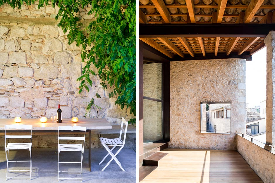 This architect-designed and owned minimalistic second-story apartment has a scenic outdoor terrace and sleeps up to 6. It’s an excellent location for a family with children that like to explore, located in the heart of Girona, in the historic medieval quarter. The living room fireplace can be enjoyed from inside or on the outdoor terrace, which has a high railing safe for little ones and ample space to play hopscotch or blow bubbles. The pleasant kitchen offers a communal area for the whole family to plan their city adventures over breakfast.