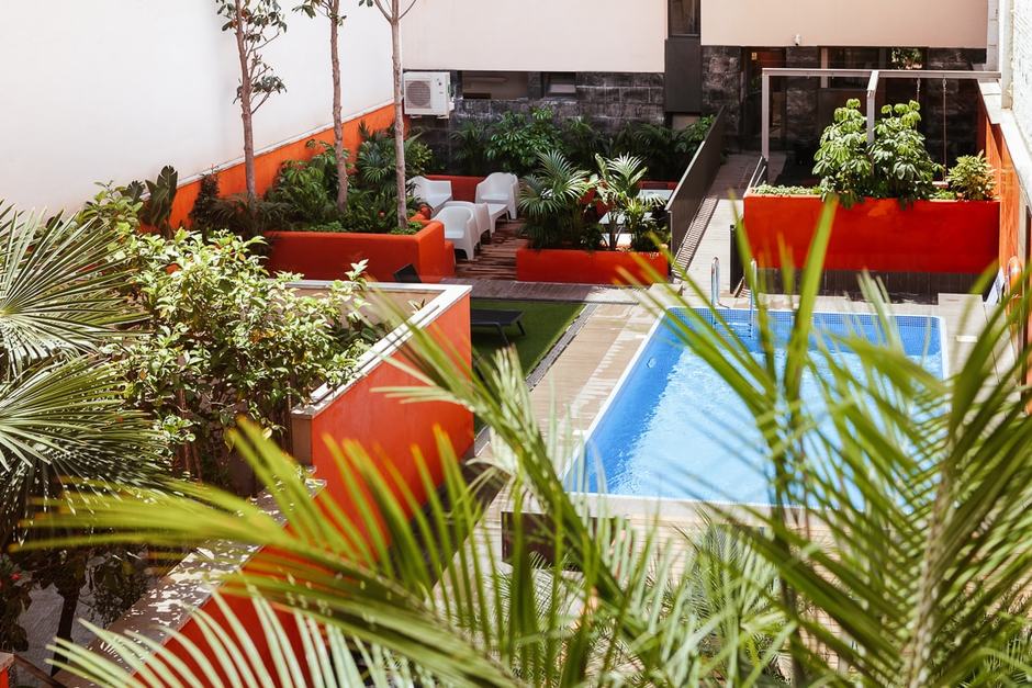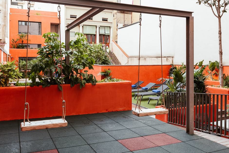 Hip and cool. This Barcelona hotel with apartments gets full marks for style with a clean interior lines and brightly colored linens. The bathrooms are contemporary spa-style and the bedrooms are relaxing with cool, white drapes. Exterior walls are painted a sunny orange that contrast with the blue pool and there are planters with lush, green foliage. We love the fresh, contemporary look, the pool area with plenty of loungers to soak up the sunshine and the sanctuary-like feel in the heart of the city.