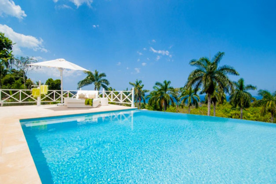 This modern villa with an infinity pool in Wiltshire, 15 minutes from Montego Bay, is fully staffed with a nanny, private chef, driver, laundry service, butler, housekeepers, and night manager. Parents can play billiards or table tennis, enjoy a frozen cocktail at the bar, or catch a sporting event on the outdoor television while supervising children in the saltwater pool. The master suite has an enclosed private garden; the property has 5 bedrooms in total and is ideal for a large family escape or several families vacationing together. There is a spacious formal dining area seating 14, perfect for special family dinners prepared by the villa’s private chef. The outdoor terrace has a fully-stocked wet bar, an outdoor TV with cable access, billiards, and table tennis. One complimentary 60-minute massage is included with each weekly rental.