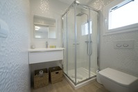 The residence has 5 bedrooms and 5 bathrooms, split between the main house and a separate annex. Main house: a large and well-equipped kitchen opens to an interior dining space, seating 8, with access to the exterior terrace. The primary suite is part of the main house, but is accessed from the exterior terrace and also features a small kitchen, satellite TV, and terrace access. The second bedroom also has a kingsize bed and satellite TV. There are 2 service rooms in the main house, each with kingsize beds and satellite TV. Annex: close to the main house, an annexe houses the second primary suite, with a kingsize bed, kitchenette, satellite TV, cozy open fireplace and terrace access. This suite also houses the washing machine.