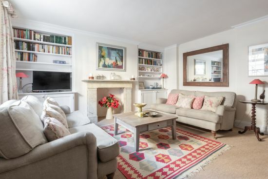Garden crescent elegance. This historic redbrick townhouse is one of London’s most exclusive addresses, exuding period style inside and out. Large windows bathe the apartment with natural light while the mature trees on the street provide natural shade as well as an appealing view. Light wooden flooring and high ceilings with plaster detailing combine with modern marble bathrooms to provide a calm and comfortable home. Large canvases and line drawings add color and style while the light modern kitchen has generous counter space, and double ovens which makes cooking a joy. We love the generous sash windows which look out towards the tree lined gardens, with the glass dining table creating the perfect place from which to sip a morning coffee and watch the world go by.