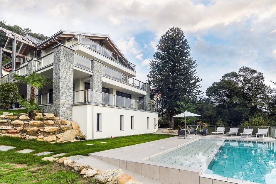 Modern Italian. The property was completed in 2014 and everything is brand new and furnished to a high standard throughout. The space is uncluttered so that parents with young children don't need to worry about breakages. Floor to ceiling windows ensure that guests can enjoy the phenomenal lake views from this area. We love the wooden ceiling beams, the unique contemporary lighting and the sleek modern feel.