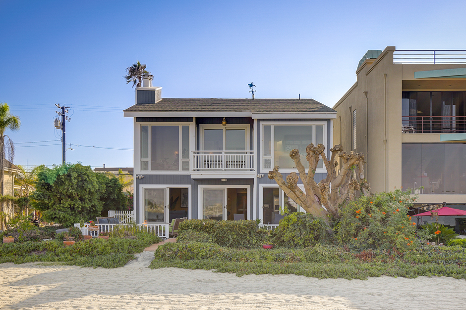On the beach. An attractive oceanfront villa with classic weatherboard exterior and huge, white picture windows flooding in the light and ocean views. The owners have painstakingly refurbished and restored its interiors with terra cotta tile floors and finishes, over-height beamed ceilings and the addition of a spacious waterfront balcony protected by native California plantings and a mature hedge wall to enhance privacy. Bedrooms are cool but cozy with carpet in the kids room and play area adding comfort for little crawlers. We love the seamless inside/outside living here with glass doors designed to be flung open onto balconies and terraces where it’s a hop, skip and a jump onto the sand or into the jacuzzi.