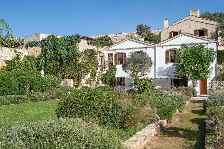 This stylish country villa, set within acres of lush Mediterranean gardens with stone-carved swimming pool, is perfect for families seeking peace and privacy but with local amenities on the doorstep. It sleeps 8. Sweeping countryside views are blended with beautiful spacious interiors, and the light and airy open plan set-up seamlessly connects the inside with the property’s glorious natural setting offering plenty of comfy nooks to hide away and relax in. The two primary doublesize bedrooms benefit from their own ensuite bathrooms. For guests wanting to sample local life, the restaurants, cafes and shops of Alaior are just minutes’ walk away.