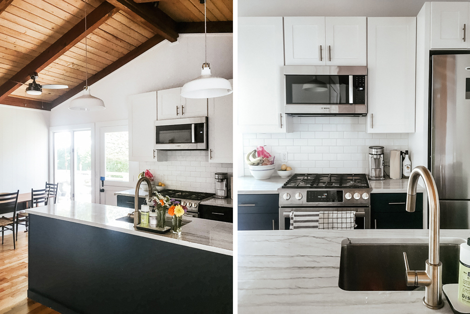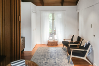 Beach house style. Designed in the 1960s by modernist architect Andrew Geller, this recently renovated house is a well-designed combination of original mid-century accents and modern amenities – all done in a family-friendly way. There are huge windows, cathedral ceilings and new hardwood floors throughout. We love the deep blue kitchen with marble countertops, the fairy lights on the spacious deck, and the easy proximity of a lovely beach.