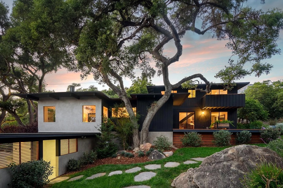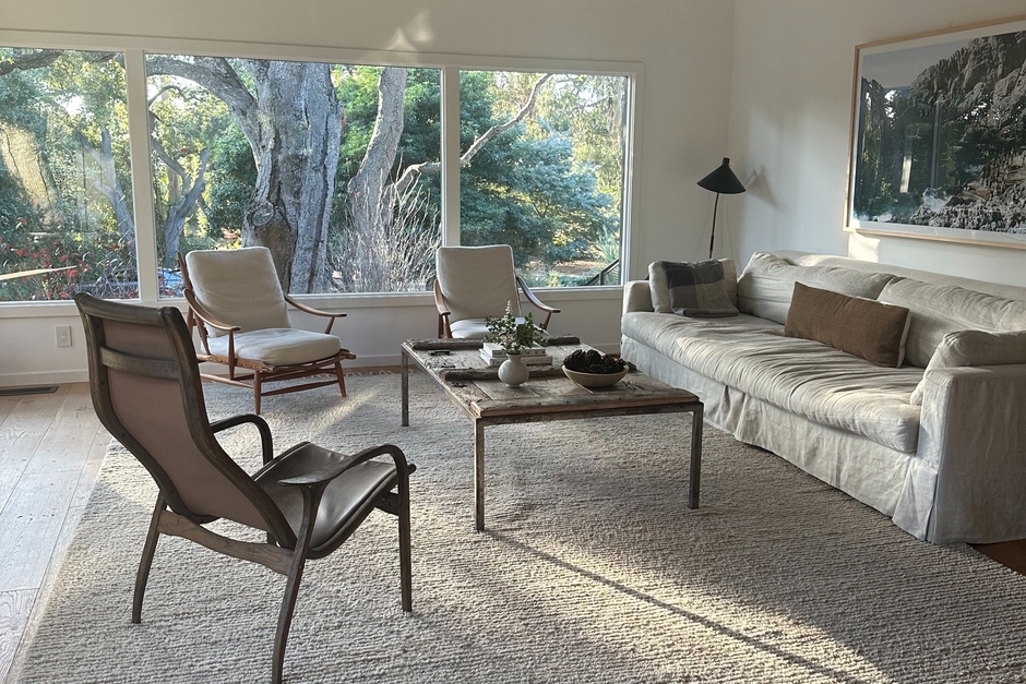 Contemporary Californian. A modern classic of redwood and glass offering up effortlessly stylish living amongst the charming Montecito countryside. In true SoCal glass house tradition, large picture windows and doors feature widely, bringing in views of Californian oaks, olive, eucalyptus, and fruit trees which are integrated into the architecture of the home. Interiors were designed by Faye McAullife, an LA based designer, featuring natural woods, rustic stone and whitewashed walls complimented by vintage finds, warm textiles and bohemian wall art. We love the luxurious freestanding tub in the primary bedroom with prime garden views to accompany decadent soaking sessions. The bedroom's private terrace is perfectly set up to keep the indulgence rolling with alfresco sofas for enjoying laid back morning coffees or evening aperitifs amongst the treetops.