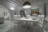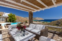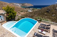 The villa faces south in a privileged, wind-sheltered location above the marvelous golden sand Agrari Beach, with magnificent views of the Aegean Sea. Although located just 10 minutes by car from town, the property is very tranquil, private and surrounded by stunning scenery. Agrari Beach, with its intimate charm and crystal clear waters, is just a quick 10-minute walk downhill. It’s 15 minutes from Mykonos Airport and 15-20 minutes from Mykonos Port by car or taxi.