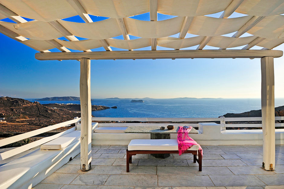 The villa is near Houlakia, 10 minutes from Mykonos town with Agio Stefanos the closest beach, 5 minutes’ drive away. Houlakia itself has a small, pretty and unique pebble beach. The property is secluded with stunning views of the Aegean sea. There are supermarkets and other shops in Mykonos, a short drive away. The closest airport is a 15-20 minute drive away and the island is accessible from Europe during the summer months, with flights via Athens in low season. It can also be reached by ferry from Athens. Car hire is recommended for this location.