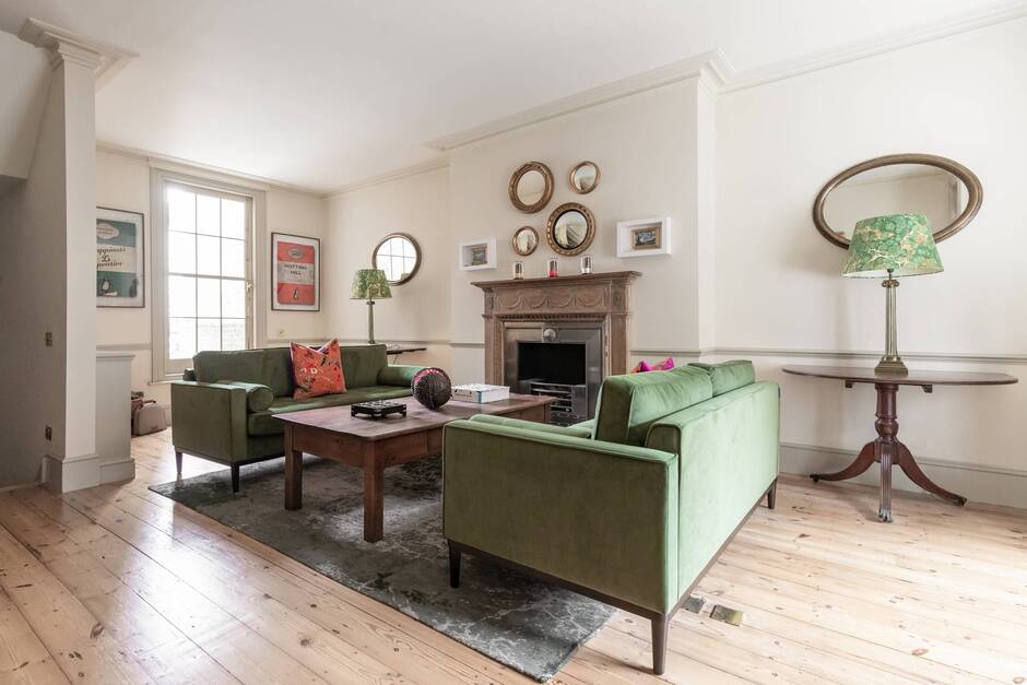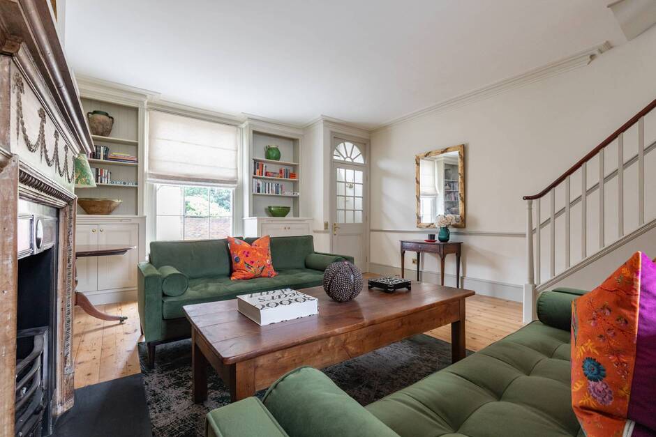 Characterful and cozy. The décor throughout is clean and modern but with a nod to the home’s heritage with key features such as the living room’s ornate fireplace and stripped wooden flooring. There are lots of quirky details, such as dual aspect windows and split level stairs, which add to the cozy feel. We love the traditional all-white bathrooms, the light-filled kitchen and the handy built-in storage.