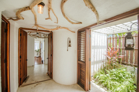 This is an extensive 5 bedroom, 5 bathroom home. The master bedroom has a kingsize bed, sitting room, ensuite bathroom and outdoor shower plus ocean views. A second bedroom has two queen size beds, and 2 bedrooms can be made up as a kingsize bed or 2 twin beds. The 5th bedroom has a king size bed and opens onto a terrace leading to the pool. All bedrooms have ensuite bathrooms. There are 2 further living rooms, one between 2 open courtyards inside. There is also a powder room, laundry, dining room and covered garage plus a TV room and an adjoining recreational room with exercise equipment (elliptical machine and free weights) and a kiddies play room. The kitchen opens right into breakfast nook and both enjoy views of the front gardens and the indoor orchid courtyard. The infinity edge beach entry pool is just off the back porch.