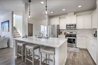 This residence has 4 bedrooms and 2.5 bathrooms, set over 2 floors. Downstairs is a light-filled open floor plan living/dining (dining table seats 8, island bar seats 3), with a fully-equipped kitchen boasting stainless steel appliances, large island and quartz countertops. The main floor also has the master suite with king-size bed, laundry room, dedicated office and ½ bath off the foyer. Upstairs are three guest rooms, another full bathroom with double vanities and a bonus/game room. Two of the guest rooms each have queen size beds (one has a walk-in closet) and the fourth bedroom has a bunk bed: a single bed on top and a double bed underneath, plus a single trundle bed.