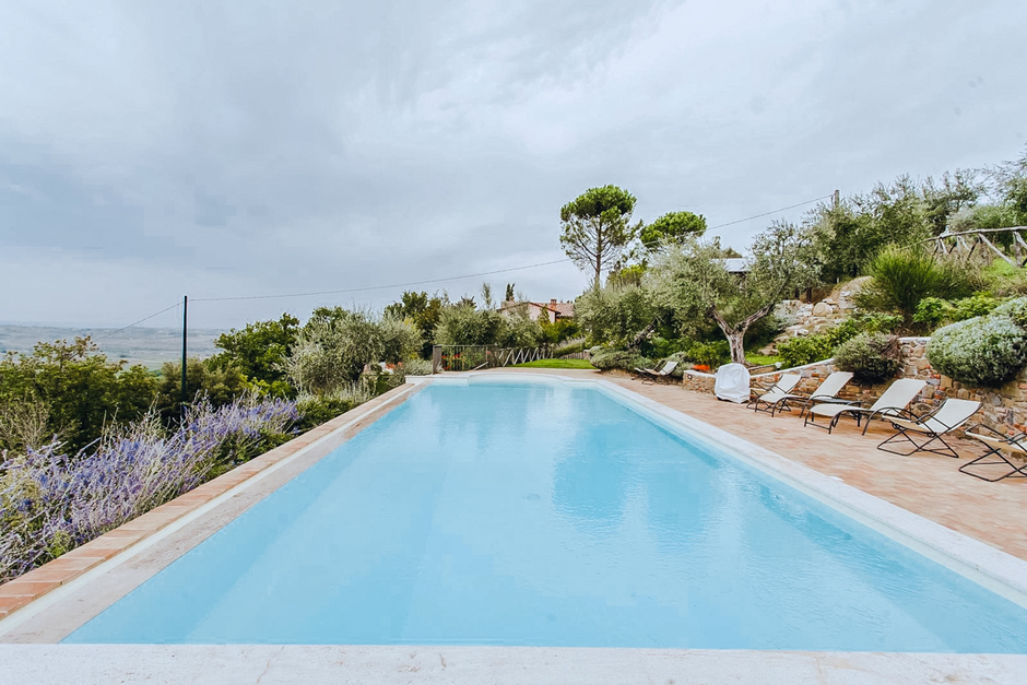 Italian chic. The Brunello Residence décor is based on simple elegance and high Italian comfort. In the open plan living room is a wonderfully ornate, red woodburning ceramic stove. There are several doors to the loggia to let a cool breeze in. The master ensuite bathroom is delightfully luxurious with an antique copper bath tab where you can enjoy a leisurely soak. We love the loggia where you can enjoy family meals al fresco, the salty eco-swimming pool, which has less chlorine than a usual pool, and the traditional wood beamed ceilings and terracotta walls.