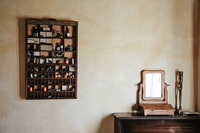 Italian charm. This beautiful villa was a farmhouse in the 19th century and has been lovingly restored, with artifacts from travels and family treasures. The hosts wanted to maintain the original Umbrian Tuscan atmosphere of the estate, and restore and decorated it with unusual details. It includes blackboard walls with cheerful slogans, wetroom bathrooms in multiple relaxing colors, library with 700 books, and statement lighting hanging over the main family dining area. Details are both interesting and soothing at the same time; modern touches set well with traditional terracotta tiling and exposed wood beams. The garden has a range of fruits trees; aromatic herbs include rows of lavender leading to the infinity pool. We love its color, authenticity and unique design.