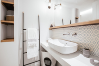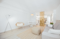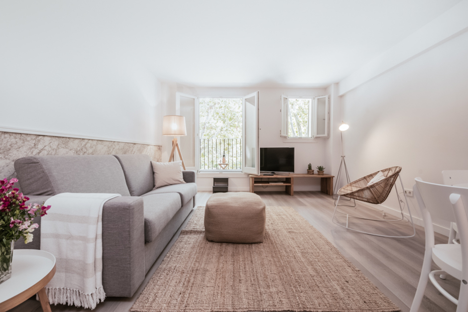 Cozy Nordic. Fresh and modern, this light, lovingly-transformed space has a clean modern minimalist style and plenty of pine, gray and white tones. The main living space is uncluttered and offers plenty of space to eat, play and relax. The bedroom and living room have Majorcan shutters to keep the rooms dark at night and prevent any outside noise from disturbing the peace. The location is one of the stand out features - who needs paintings on the wall with perfectly-framed views of the royal palace through the living room window? We love the pretty lighting, the tiled bathroom and the serene and relaxing bedroom.