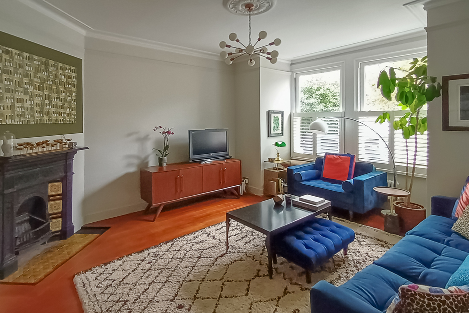 Old meets new. Modern, bright and characterful, this home blends many of the original period features with contemporary styling and modern furnishings to create a stylish yet sympathetic family home. There are 3 original fireplaces around the house, retaining the historic charm, yet the house has been completely renovated in 2021 to include a stunning sleek kitchen with a minimalist feel. We love the obscured glass crittall-style doors downstairs, which performs a useful zoning function, as well as the beautiful traditional stained glass front door and the contrasting mid-century style living room furniture.