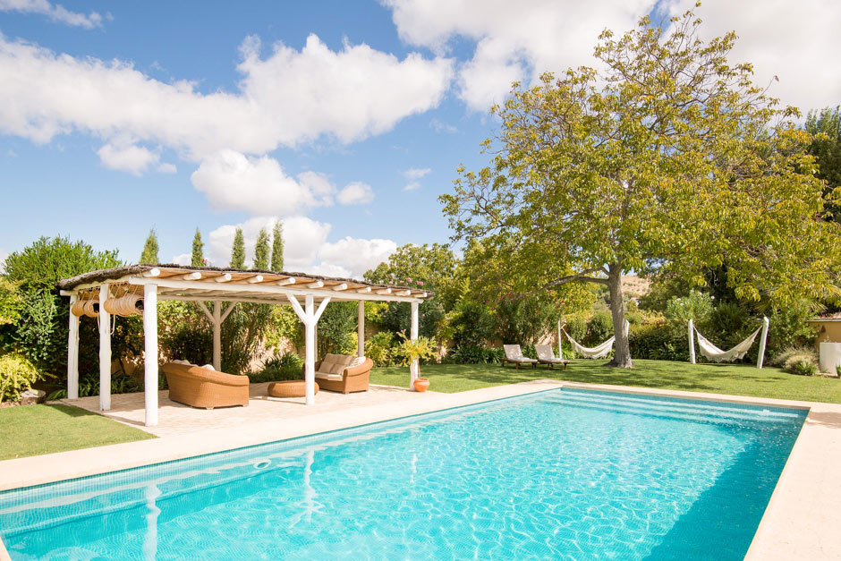 - The pool area is fantastic, with a solar-heated pool, loungers, hammocks, wicker loungers with plump white cushions and an alfresco dining area