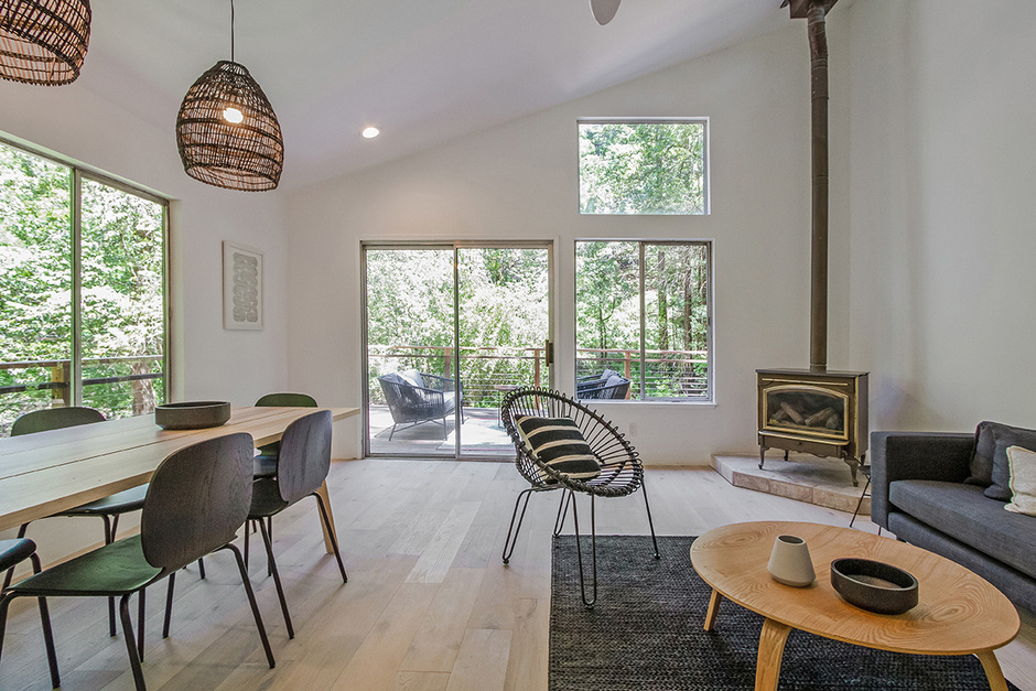The house is located in a rural area full of trees in the little town of Monte Rio in California. Nearby, there’s a coffee shop offering Israeli food right next to a great outdoor skate park (just 3 minutes’ drive) and Monte Rio itself has parks, cafes and stores, as well as a public beach along the Russian River (5 minutes’ drive). It’s close to Guerneville and Occidental for great restaurants (10 minutes’ drive) as well as Jenner and the Sonoma Coast State Park (less than 20 minutes’ drive) where you’ll find miles of hiking trails and beaches to explore. Sonoma and Napa are 1 hour away; San Francisco airport is just under 2 hours’ drive.