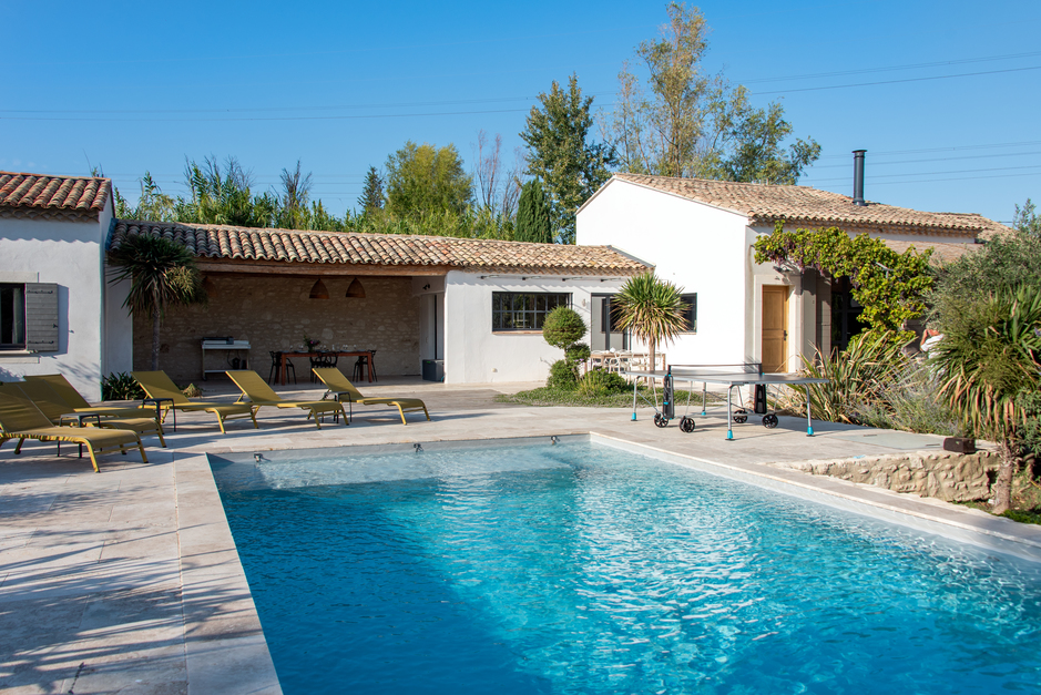 The residence is located 3 minutes’ drive from the village of Eyragues in Provence. The village offers plenty of shops, cafes and restaurants. The Chateaurenard market (10 minutes’ drive) is a bustling spot to visit on Sundays, while the weekly market in St Rémy on Wednesday mornings is full of delicious local produce. Take a trip to visit Avignon, Arles or Nimes, go for bike rides or walks in the Alpilles or visit the Abbey of Frigolet. You can also follow one of the 2 canals to reach Noves on foot or by bike. Marseille Marignane airport is just under an hour away, as are.Aix en Provence and Marseille, while Avignon and its TGV station are only 25 minutes away.