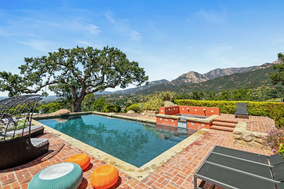This gorgeous and historic Spanish hacienda with a pool and hot tub in the American riviera has sweeping ocean and mountain views and is for anyone who is a kid at heart. It sleeps 12 + 1. You’ll have 4 acres to roam here within a gated compound that provides endless wonder and discovery. This is a special place where you can cook up a feast in the gourmet kitchen with ocean views, swim in the pool, discover the gardens and star gaze in the hot tub. If you need extra space, there are 2 other accommodations that can't be seen from the main house to rent separately: a Studio and Guest House.