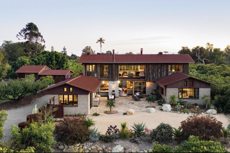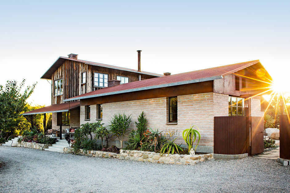 Bold and beautiful. The design of Sweet Shade Farm is inspired by hay barns and farm buildings with natural materials and locally crafted elements such as tiles, stonework and metalwork. Stay here and you’ll enjoy expansive interiors with big views in the day and cozy nights. The house is full of natural light provided by large doors and windows ideally kept open during the day to take advantage of Santa Barbara's temperate climate and fresh breezes. The siding, beams, rafter, and joists are all reclaimed wood, and the 1st floor is wood-framed and adobe brick, with the adobe made on site. We love the handcrafted tiles, the open layout and the unrivalled outdoor space.