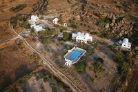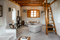 This cottage close to Cape Columbo on the north side of Santorini shares a pool with 2 other cottages and is spacious, secluded and beautifully designed. Measuring 204 sqm and set on private land of 8000 sqm, the cottage is 150m from quiet Cape Columbo beach. The village of Oia is 3.5km away for all supplies. Sit in the garden, swing in the hammock, play in the pool or enjoy time spent on the beach: this property is well placed for family fun in Santorini.