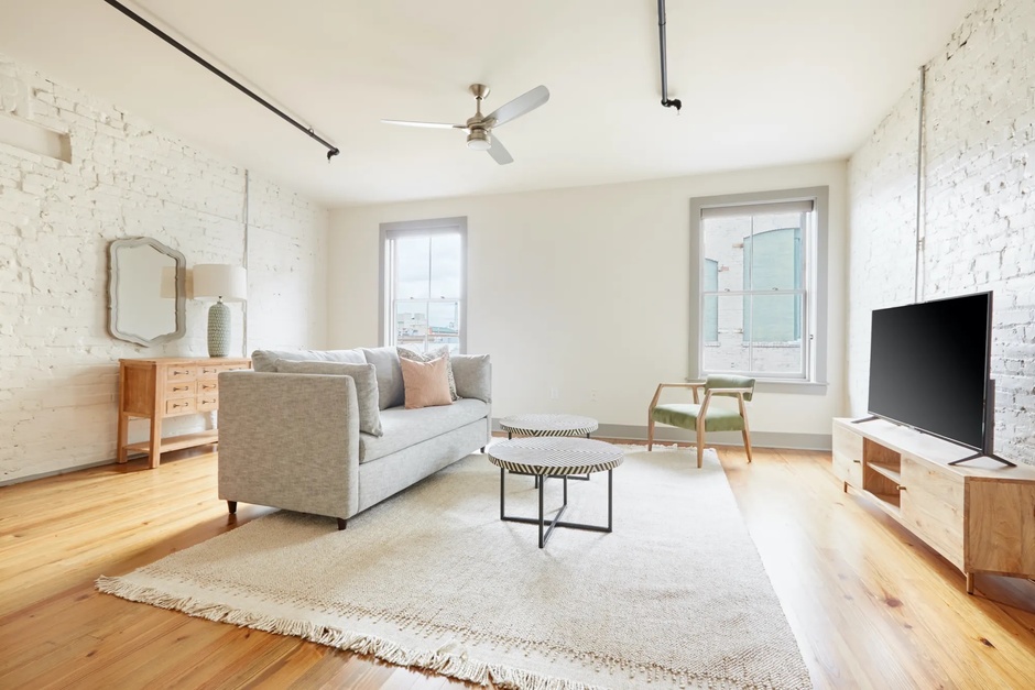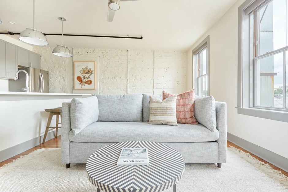 Industrial charm. The apartments are modern and comfortable, with an easy Southern color palette and relaxed furnishings to create an urban-style calm sanctuary within the city. Luxurious shower amenities, artisan coffee and super comfortable bedding will ensure the whole family gets a good night’s sleep. We love the bright and airy decor, the exposed brick walls and the use of natural textures throughout the space.