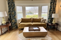 Relaxed Beach House. This light filled, relaxed and spacious home is great for families and includes design touches and cozy spots. The couches are from George Smith, the standard bearer of British upholstery, while there are Bose and Sonos speakers throughout the house and a newly-refurbished kitchen well appointed with Kitchen Aid appliances. The crown jewel of the house is the screened-in outdoor cedar room, cool on a summer's night and perfect for al fresco family dining. We love the cute and cozy cabin bed, the wonderful backyard and the serene decor throughout.