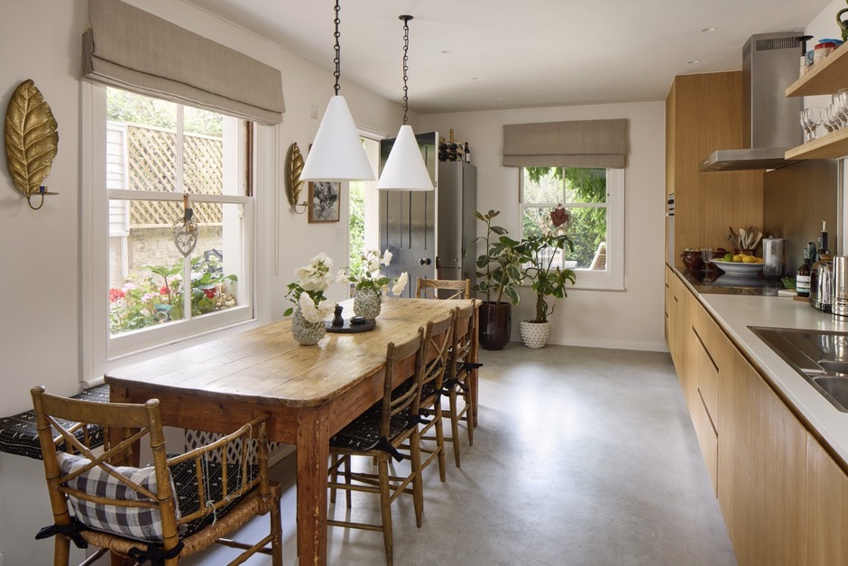 Playful Victorian. Located in a conservation area of classic period townhouses, this elegant residence combines original features with subtle contemporary updates and a sense of fun. Owned by a couple working in the creative arts, it is packed full of beautiful paintings, sculpture, modern art and books from their own collection weaving artistry and interest throughout. Whitewashed walls and light, wooden floors are complimented by brushed concrete, painted shiplap and sisal carpeting to create a calm and contemporary feel while marble fire surrounds and original sash windows uphold some historic elegance. We love the garden oasis with its olive tree, walled trellises and pretty paved patio offering the perfect spot to enjoy a morning coffee or an afternoon tea in the sun.