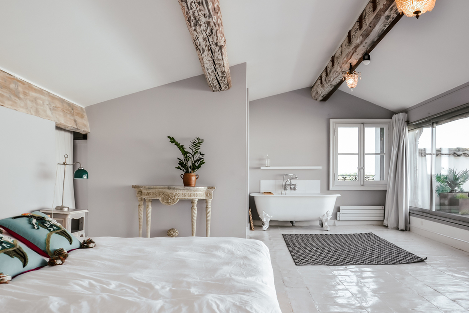 Laid back luxurious style and a sense of space. Dating from the late 1880s and located in a small French village surrounded by vineyards, this is truly a spectacular place. It is flooded in light from the massive floor-to-ceiling windows and high ceilings. Original details include shutters, fireplaces, wooden beams and wrought iron balconies. The residence is beautifully painted in light colors.