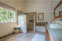 The villa has 5 bedrooms and 5 bathrooms, all set over 1 floor. There are 2 lounge areas, with doors leading out to the terraces, and multiple eating and dining areas outside. Four of the bedrooms are in the main single-storey house, arranged around an inner courtyard (2 kingsize rooms, 1 twin room and 1 bunk room with 4 single beds). This courtyard can be closed at both ends making it an easy area for parents with young children. The fifth kingsize bedroom is set slightly apart in the garden. All bedrooms have air conditioning and overhead fans and fitted mosquito nets, with ensuite bathrooms with either a shower or bathtub.