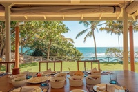 This light and airy beach front home in Sri Lanka is perched above the ocean, with a private pool and direct access to a sandy beach. It sleeps 6 adults + 4 kids. The villa overlooks a small bay with gorgeous southerly views across a surf break. It boasts an enticing turquoise salt-water pool which sits between the villa and the ocean, with an adjacent al fresco shower and private path leading down to the beach. Between mid-December and early April, there is a left-hand surf break that experienced surfers can paddle to from the beach gate. The rest of the year, parents can swim, sunbathe, work out in the home-gym or simply relax while the kids play in the pool.