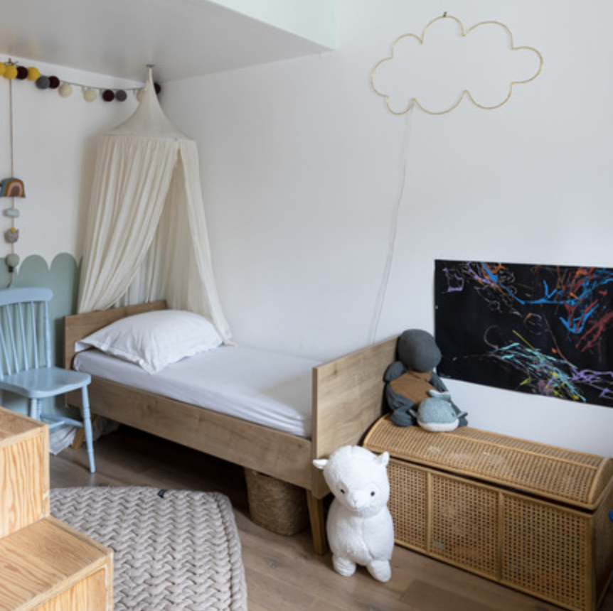 Charming and chic townhouse. The kitchen is spacious with skylights, a big family dining table, plenty of worktop space for cooking with views of the garden. The living room has classical style and elegance with a decorative fireplace, chandelier and antique pieces that mingle with modern furniture. The kids’ room allows children their own private space. We love the magical master bedroom with its painted ceiling and large windows looking out to treetops, the stained-glass windows in 1 of the bathrooms, and the peaceful garden studio.