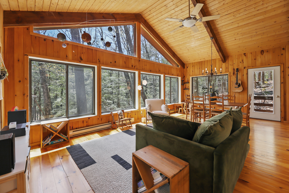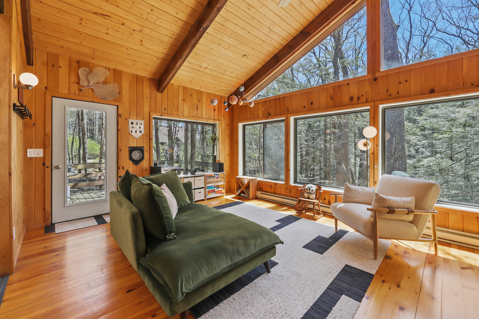 The house is centrally located in Sandisfield, in the Berkshires, Massachusetts. Walk out the front door to explore the area from hiking/walking trails within the Otis State Forest and the community. There is a brook behind the house and it's a 5 minute walk to a private lake and a heated pool (open in summer months). Year-round hiking and birding, snowshoeing and cross-country skiing all take place on the trail system within the community. Visit the nearby ski slopes including Otis Ridge ski mountain, perfect for learning to ski (3 minutes’ drive), Butternut (20 minutes), Bousquet or Catamount Mountain (both 40 minutes). It’s perfectly situated close to all the cultural venues in the area (Tanglewood, Jacobs Pillow, The Mount and so much more). It’s around 2 hours from Boston, or 2.5 hours from New York City.