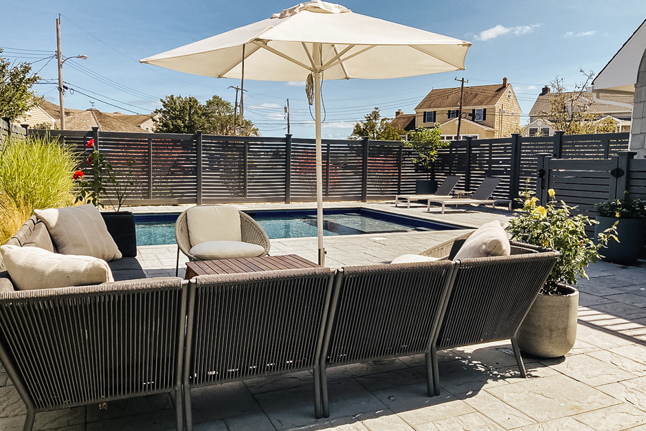 This stylish family home in Brick Township, New Jersey comes with its own private pool and dedicated playroom, just steps away from a kid-friendly beach. It sleeps 12. The house is perfectly set up for a fun, family getaway. It's stylish, yet functional, with a large kitchen and adjoining dining room for enjoyable cooking and dining with the whole family. Parents will love their bedroom, which has a stunning private deck with an outdoor sofabed - the perfect spot for your morning cup of coffee. There’s also 2 sections in the oversized family-friendly living room: one area for chatting or playing games in high-backed chairs by the fireplace, and another area for curling up on the sofa and watching a movie. Check out the beautiful new 20’ x 16’ in-ground pool with a quartz black bottom, as well as the gorgeous outdoor deck with relaxing lounge and dining areas, where you can bask in the coastal breeze.