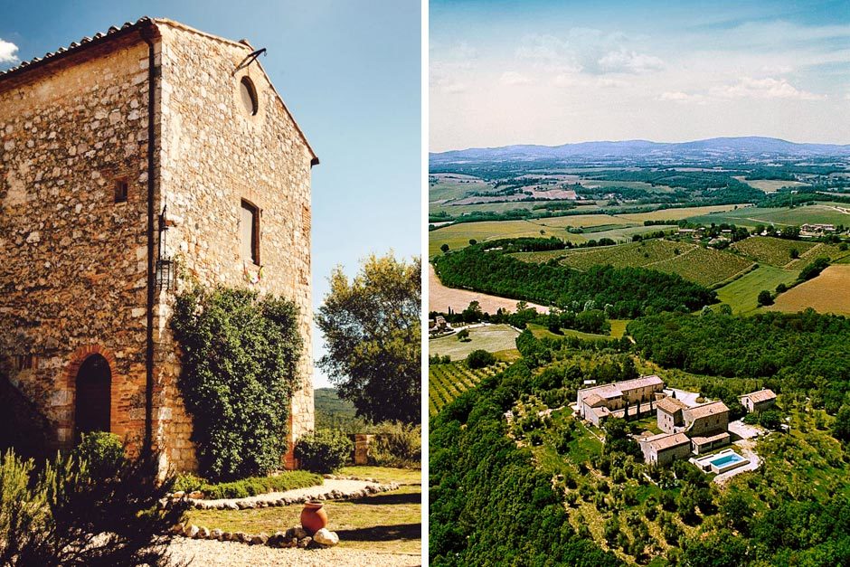 This romantic villa estate 30 minutes north of Siena sleeps up to 22 and offers the perfect setting for a Tuscan vacation, with olive groves, donkeys and chickens and a pool with views of the countryside. The entire villa can be rented as one unit for a large group vacation, but it can also be rented as 2 smaller apartments. Renting the entire villa, guests will have access to several kitchens, multiple living spaces, and outdoor sitting areas. Trusted babysitters are available if required. Guests can make arrangements to have breakfast, lunch and dinner prepared on site using many ingredients right from the farm. A family favorite is pizza night around the 1000-year-old restored outdoor oven.