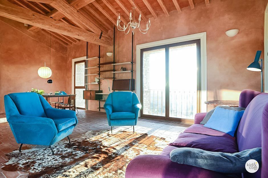 Modern Italian. Walls are semi-exposed, floors are tiled and the furnishings are a blend of vintage and ultra modern. The aesthetic is crisp, clean and comfortable; the building has been sensitively restored, with wooden beams, flagstones and marble all sourced in Italy. There is a hand-crafted cotto floor and local ceramics line the shelves, from a modernist porcelain collection to contemporary pieces. Unique furniture pieces come from Italy’s finest antique markets.