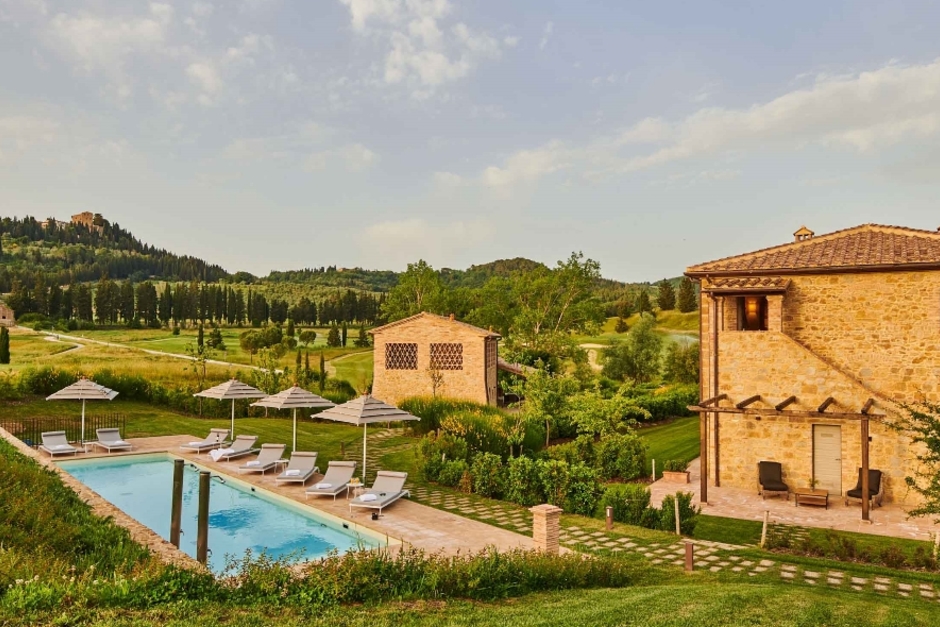 Rustic luxury. The resort blends historic charm and rustic buildings with all the contemporary luxuries of a modern-day 5-star resort. Warm, earthy tones welcome you to the minimalist main building of the hotel, where you’ll find a sleek 1000m2 spa and heated indoor and outdoor pools. Opposite the main hotel building is the historic tobacco warehouse, built in the early 1900s for residents working on the estate, this architectural gem works seamlessly with the rural Tuscan landscape. We love the laid-back rustic wooden materials used in the villas, the luxurious textiles used in the suites and the smart feel of the hotel reception.
