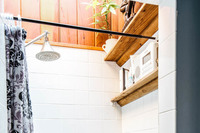 This 2-bedroom, 2-bathroom property is set over 1 level and has a largely open plan layout, with kitchen, dining area and lounges open to each other. There are multiple gated yards outside where kids can play safely. The house has 2 bedrooms: a master bedroom with kingsize bed and a children's room with bunk beds, filled with toys and books. There is also a detached studio that can be used as a further guest room, with a queen sofa bed. Outdoor space includes stone dining patios and decks, verdant landscaping and a 5-person hot tub. Bathrooms include tubs and showers, and lots of natural light.