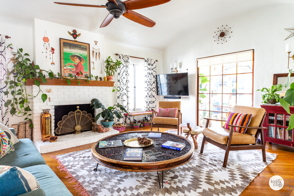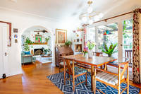 Modern eclectic. This comfortable and inviting rental in Venice is ideal for a family, with plenty of design touches to draw the eye. There are characterful knick-knacks, mirrors and mid-century furniture, and a beautiful full bathroom in the backyard studio with clawfoot tub for a soak at the end of the day. The lounge has multiple seating areas, an open fireplace, hardwood flooring and abundant plants. We love the location, the super fun child-focused touches and the compact kitchen, fully set up with a KitchenAid mixer, Belfast sink, stove and family-sized fridge.