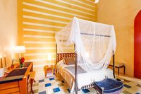 This astonishing restored hacienda was once a sisal factory and is now a heavenly collection of pools, buildings, and spaces beneath a blue sky filled with birds. There is space for everyone, whether by the pool, in one of the many garden spaces, up on the rooftop deck complete with stargazing platform, reading in a hammock or out by the bocci court. All the rooms are sizable and uniquely decorated in locally crafted furnishings and fabrics; the master bedroom is the cherry on the top, a 1,000sqft area with 20ft ceilings, a private soaking tub in the garden, and a sunken sitting area ideal for tequila tastings or late night videos. If you want to relax, chef and babysitting services are available at an extra charge.