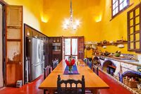 Modern luxury. What was once a 1850's sisal factory has been lovingly restored into a 6 bedroom villa with soaring 20ft ceilings and walls in gold and hacienda red (taken from the colors of the Spanish flag). Along with the polished concrete floors, locally crafted furniture and locally sourced textiles, it hangs together to create a modern oasis. Particular features include the star-viewing platform, accessed up an enclosed spiral staircase, and a seashell mosaic tunnel which leads from the inner courtyard to the pool. All around the property there are dry stacked stone walls, hedges of fica and walls designed with cages of local limestone. The house restoration has been a project of the renowned Mexican architect Salvador Reyes Rios and his partner and wife Josefina Larrain.